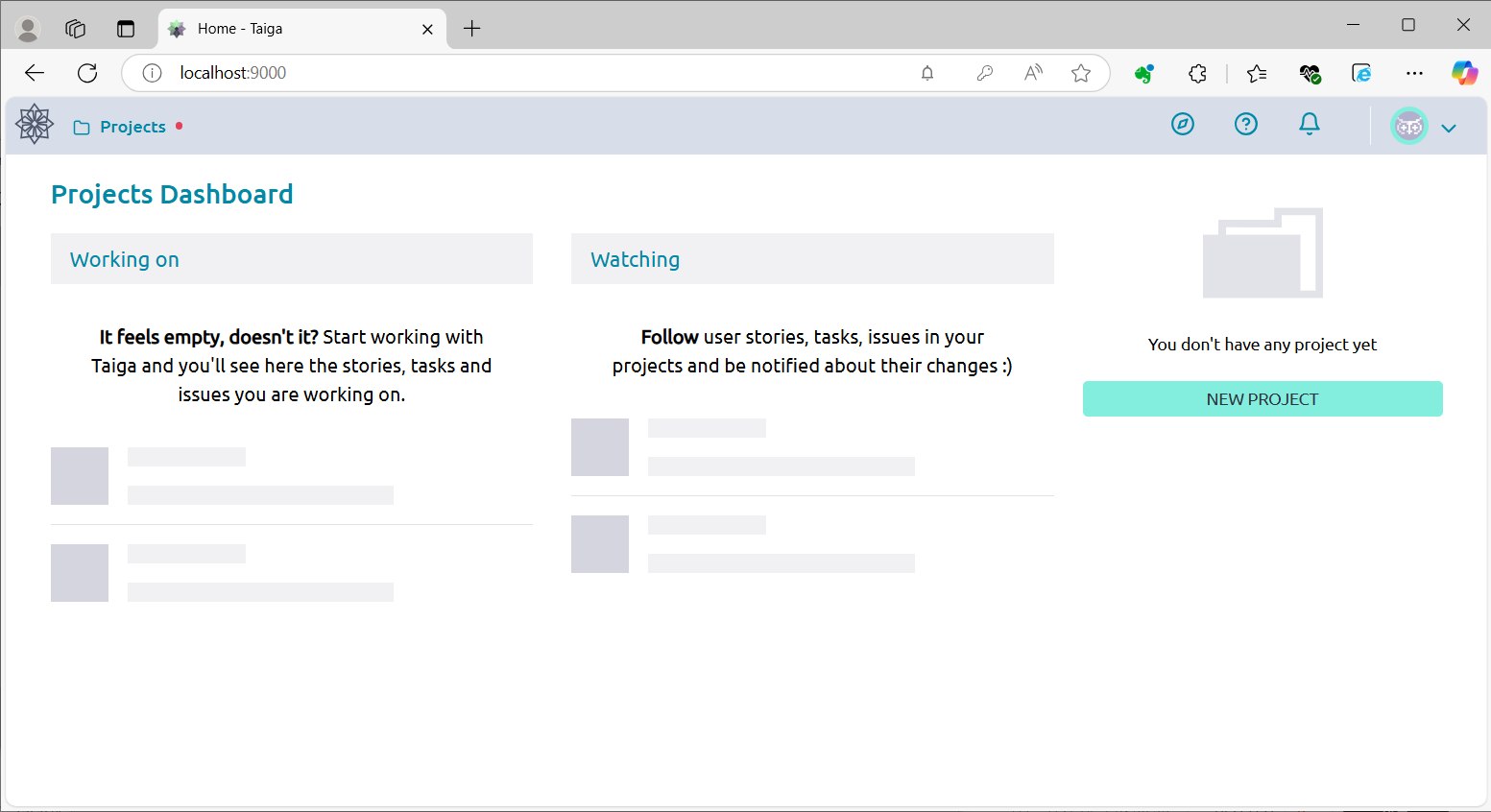 Taiga의 설치는 Docker를 이용해서 설치한다. 만얀 Docker가 설치되어 있지 않다면 먼저 Docker를 설치해야 한다. 윈도우에 Docker를 설치하는 방법은 아래 글을 참고하면 된다