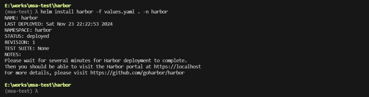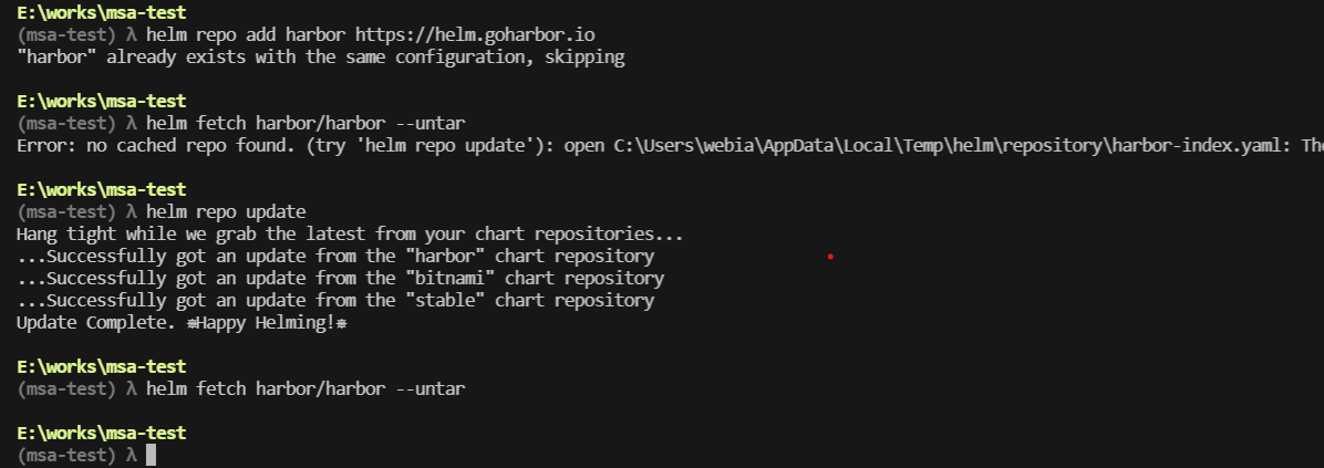 쿠버네티스로 설치하기 위한 Helm Chart를 가져온다. 먼저 harbor용 helm 리포지토리를 추가하고 helm chart를 내려 받는다.
