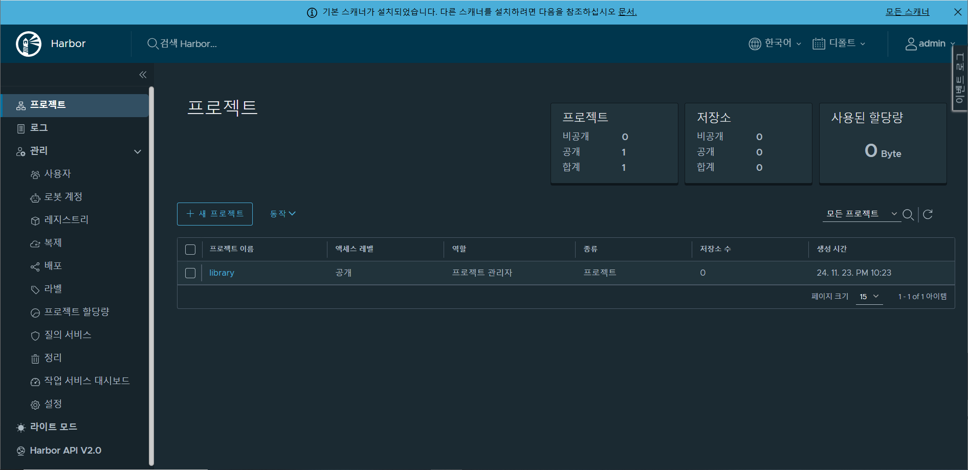 로 나와 registry는 외부 Port가 할당되지 않아 PortForard를 해줘야 하는 것 같이 보인다. 먼저 harbor.internal을 브라우저로 열어 보면