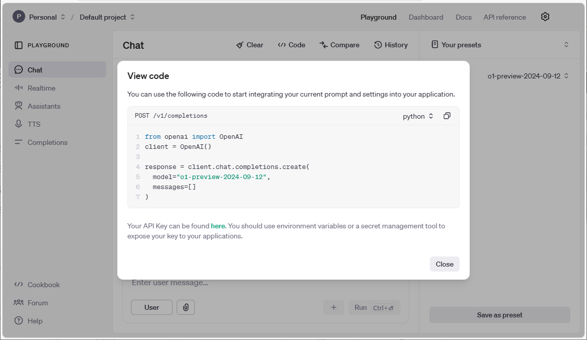 더불어서, Open AI는 작업, 예를 들어 Text generation,을 위해 사용할 수 있는 여러 모델을 제공하고 있다. 모델별로 가격이 다르기 때문에 목적에 맞춰 사용하는 것이 좋다. 이 글을 쓰는 현재는 GPT 4o가 기본으로 제공되고 있으며, 무료로 사용하는 ChatGPT는 GPT 4o mini 모델이고, 이전 모델인 GPT 3은 더 이상 제공하지 않고, GPT 3.5 Turbo만 제공하고 있는데 GPT 4o mini가 더 저렴하고 성능이 좋으니 옮길 것을 권고하고 있다. 이밖에도 새로운 Reasoning을 위한 o1, o1-mini이 제공되고 있고 능력 (Capability)에 따라 davincci, embedding 등의 모델이 제공되고 있다.