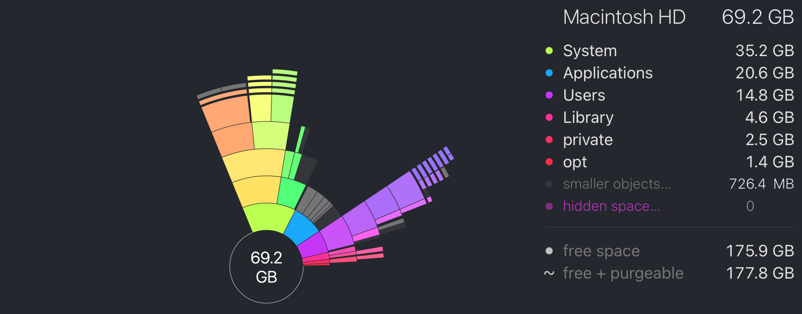 공간을 많이 사용하는 .gradle, .android, AVD와 Docker이미지 등을 1T NVMe 외장하드로 옮기고 DaisyDisk로 확인해 보면, 내장 디스크 사용량이