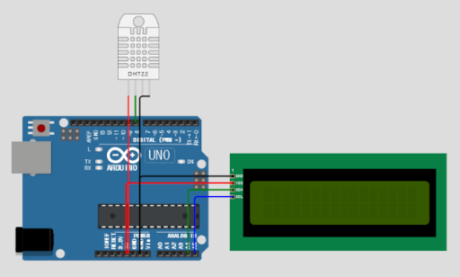 지난번에 만든 온도, 습도계를 I2C가 들어있는 LCD를 연결하여 업그레이드한 회로는 다음과 같다.