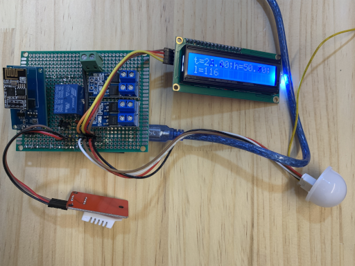 PWM 모듈과 ESP01은 아직 설명하지 않았지만 다른 부분은 이미 앞에서 설명한 부분을 하나의 보드에 조립한 모습이다.