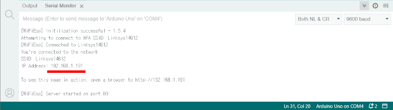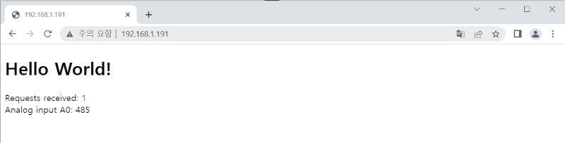 아두이노 IDE에서 Upload 하고 실행할 때 나오는 IP를 확인해서 브라우저로 접속한다.