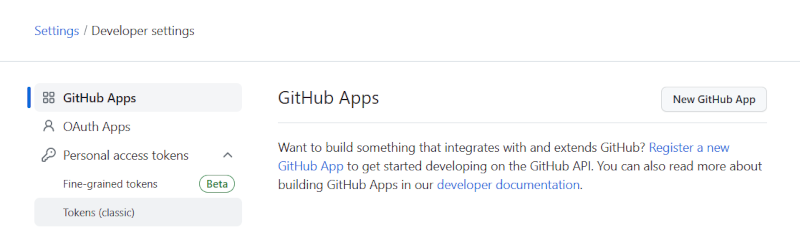 2021년 8월 13일 이후부터는 password를 이용해서 GitHub에 소스코드를 올리는 것이 허용되지 않는다. 그래서 Personal Access Token을 먼저 만들어야 하는데, 이 방식도 계속 바뀌고 있어 현재 Girhub 페이지에서는 Beta로 지정된 Fine Grrained Token을 사용하라고 권고하고 있지만 GitHub의 설명처럼 아직 일부 기능은 이 방식으로 지원되지 않고 있을 뿐아니라 이전 방식이 더 쉽고 직관적이어서 나느 Tokens (Classic) 방법을 이용해서 만들려고 한다.
