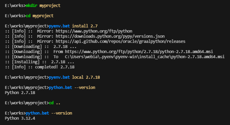- local 파이썬 버전을 지정해 폴더(프로젝트)별로 다른 파이썬 버전을 사용할 수도 있다.