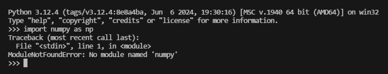 화면에 보이듯이 numpy 패키지가 없다고 나온다.