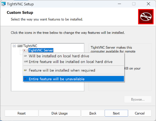 Typical로 설치하면 TightVNC Server와 TightVNC Viewer가 같이 설치되기 때문에 Custom을 선택하고 TightVNC Server를 설치대상에서 빼면 VNC Viewer만 설치된다.