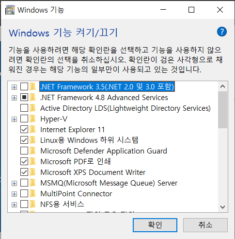 Hyper-V를 disable 하라는 메시지가 나왔다. 하지만, "제어판 / 프로그램 및 기능 / Windows 기능 켜기/끄기"에서 확인해 보니