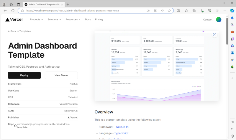 Starter Template는 Vercel에서 제공하는 호스팅 서비스에 맞춰 개발되어 있고, 사용하기 위해서 Vercel의 호스팅 서비스에 Deploy 하는 절차를 밝아야 소스코드를 얻을 수 있다.
