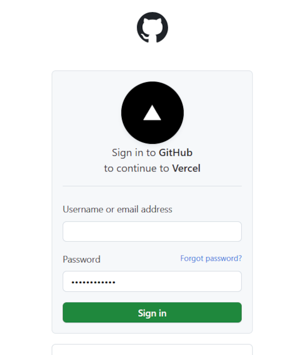 GitHub에 로그인을 하면 Vercel App을 설치하는 팝업으로 바뀐다.