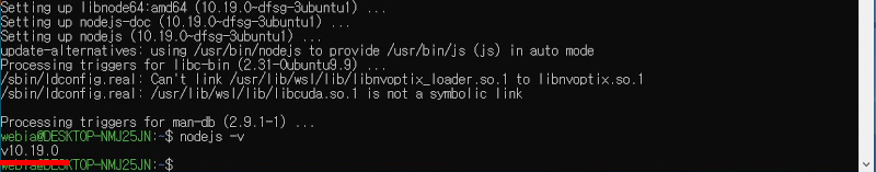 우분투 리눅스에서 node.js를 apt명령으로 설치하고 node -v로 버전을 확인해 보면,