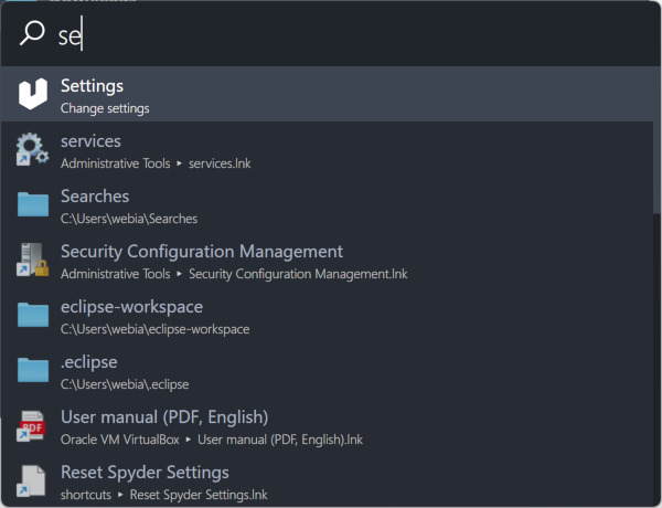 settings창을 열고 싶으면 창을 열고 입력하면 된다.