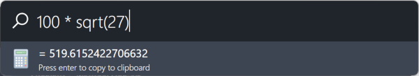 계산하고 싶은 수식이 있으면 100 * sqrt(27)을 입력하면 이미 값이 나타난다.