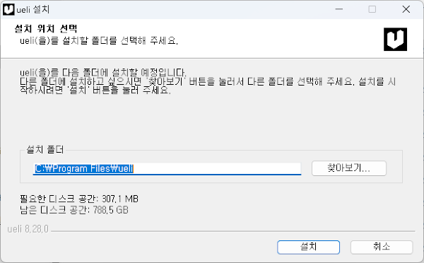 .exe 파일을 받았으면 실행하면 바로 설치가 된다. 게시자를 알 수 없다는 문구가 나타나는데, 대기업(Microsoft)에 등록하지 않은 프로그램이고, 대기업이 책임지지 않겠다는 말이다. 다행히 ueli는 윈도우 뿐 아니라, 우분투나 Mac에서도 사용하고 있는 프로그램이니 바이러스 검사만 통과했다면 사용해도 무방할 것으로 예상된다.