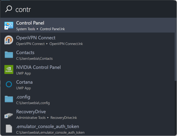비슷하게 윈도우의 제어판을 열고 싶으면 control panel을 입력하면 된다.