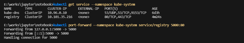 kubectl port-forward --namespace kube-system service/registry 5000:80