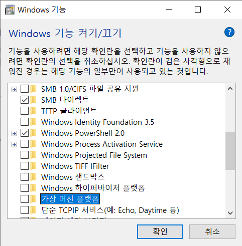 b. "가상머쉰 플랫폼"기능을 끈다.