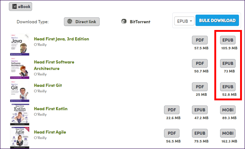 b. 구매 목록에서 파일을 다운로드할 때 "PDF"가 아닌 "EPUB"으로 다운로드