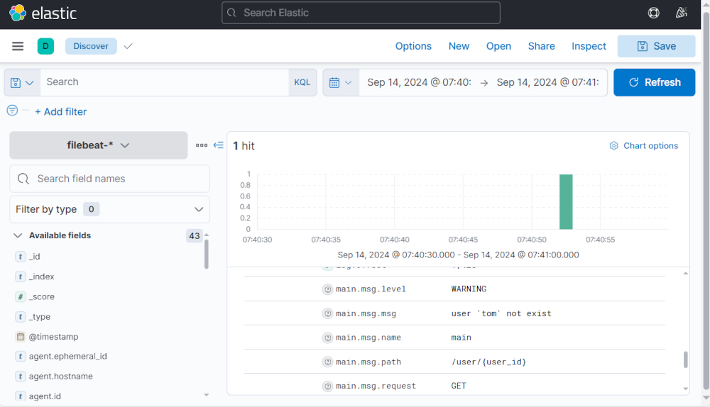 - filebeat를 실행하고 결과를 확인한다.