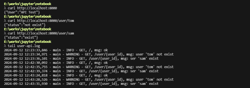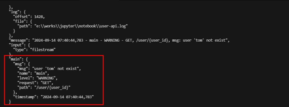 logger.info("GET, /user/{user_id}, msg: ser '%s' exist", user_id)