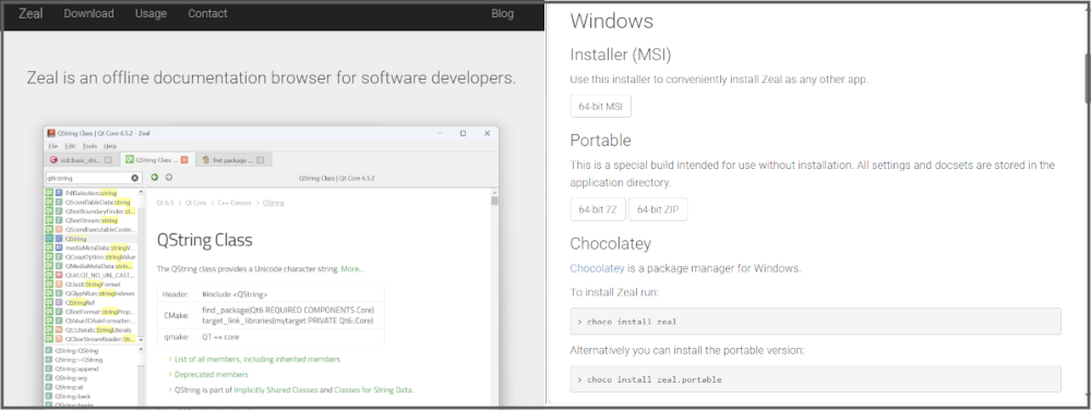 Zeal을 설치하려면 공홈을 방문하고 윈도우용 설치프로그램(MSI)을 받아서 설치하거나,