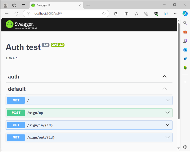 - Auth는 signup, signin, signout의 3가지 API를 제공,