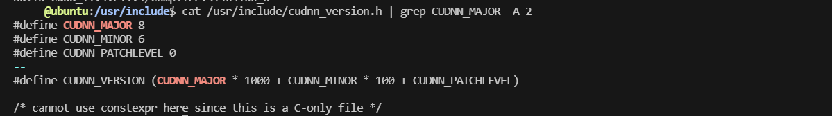 cuDNN의 경우 C 라이브러리의 header파일을 확인하는데 아래와 같이 8.6 버전이 설치되어 있다.