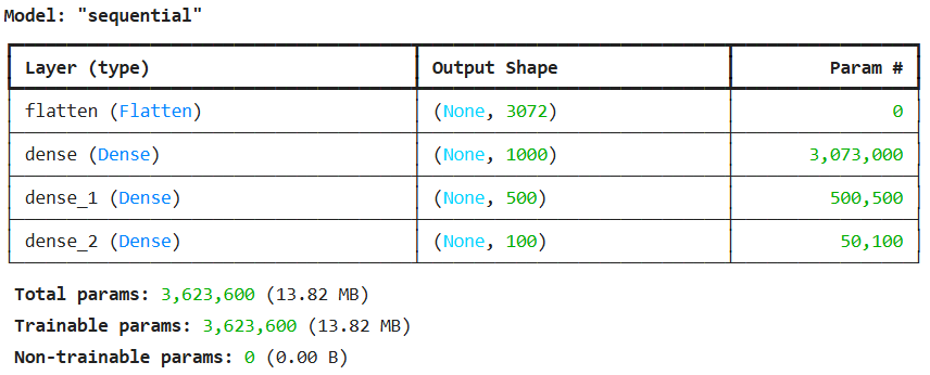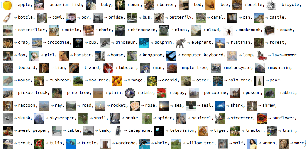 이번에는 CIFA-100 데이터를 MNIST와 같은 Dense Layer로 학습시켜 보기로 했다. 구분해야 할 이미지의 종류(Category)가 100개 이기 때문에 연결층의 개수를 더 늘리고 학습을 시켜 보기로 했다.