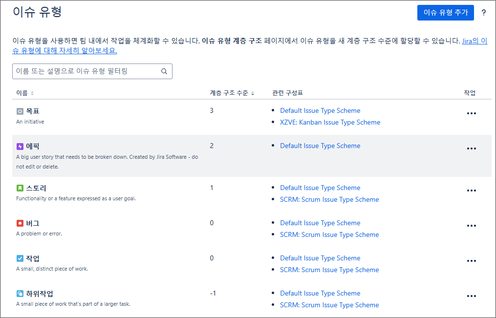 - 이슈 유형에 대한 계층 구조를 다시 정의
