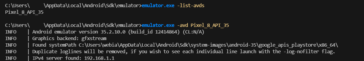 cd %LOCALAPPDATA%\Android\Sdk\emulator