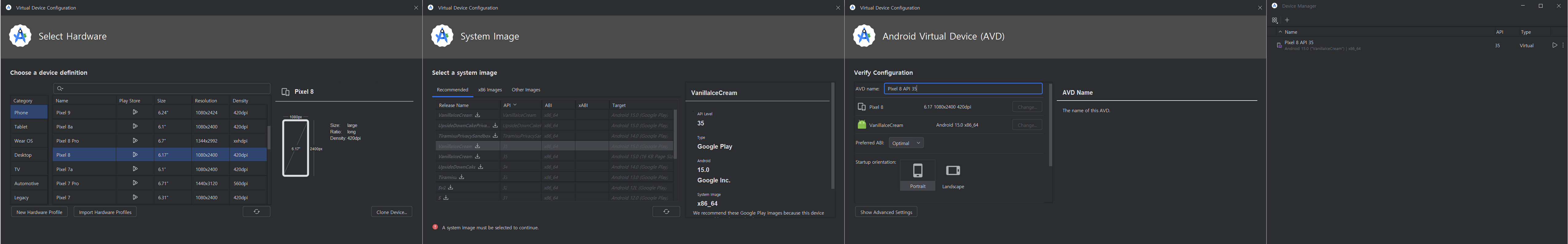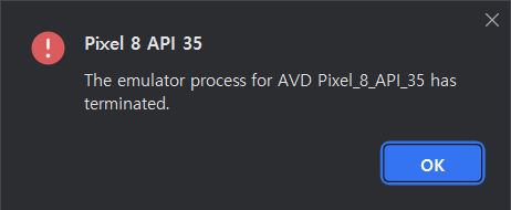 이 경우 emulator가 있는 곳(%LOCALAPPDATA%\Android\Sdk\emulator)으로 이동하고 콘솔에서 가상머신을 실행해 보면 원일을 알 수 있거나, 가벼운 경고인 경우 메인화면에서는 실행되지 않지만 CLI에서는 실행되는 경우도 있다.