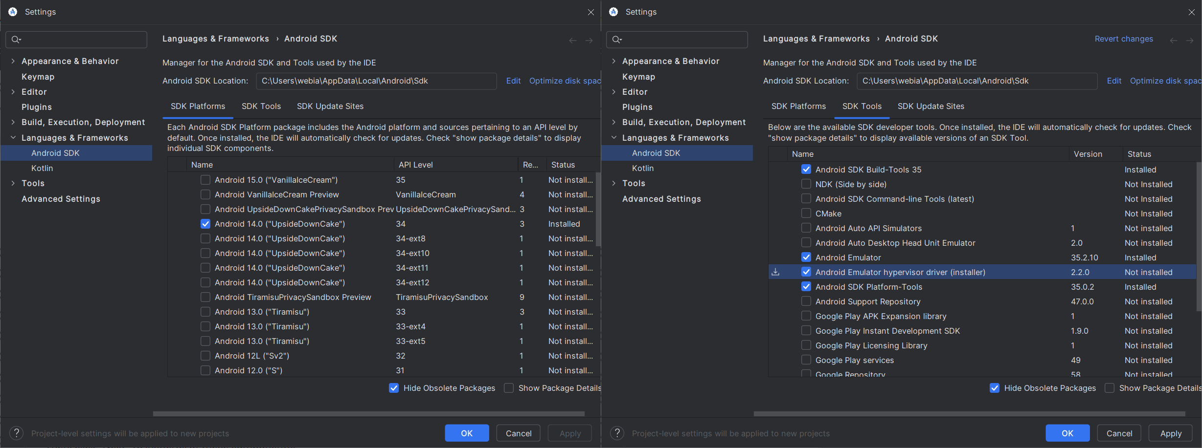 SDK 설치가 끝나면 "Windows PowerShell"을 열고, "ANDROID_HOME"을 등록하고